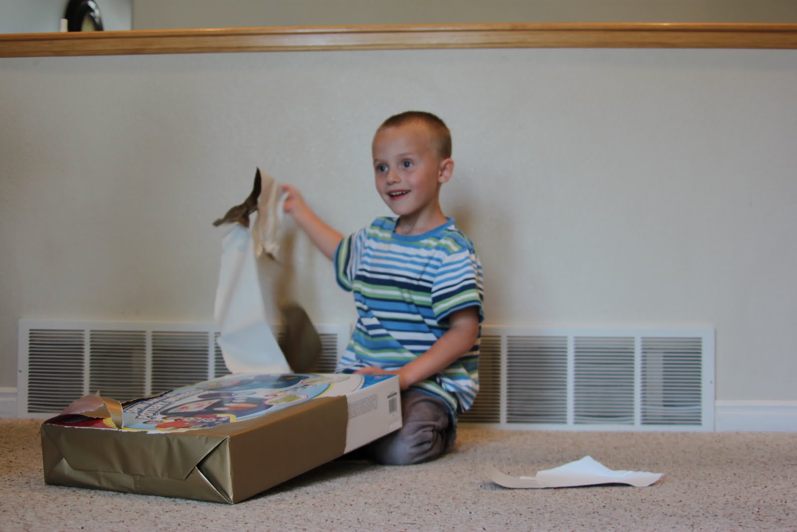 I felt so bad about Clint's birthday getting shafted this year, but as it turned out I think it was a pretty perfect and awesome birthday. Clint had been saying he just wanted a family party but then the beginning of this month he changed and said a friend party, "for sure." I thought I'd work on the birthday party before we went to DC. We went to DC and then I thought I'd work on it when we got back. I spent the day and a half washing, mowing, cleaning, and packing for our Maple Grove camp out(in lieu of the Brown's Bryce trip). So I thought I'd work on it at my moms the last few days of our Maple Grove trip. Well I ended up getting SUPER sick(food poisoning or something BAD) and then I made it back to Heber the night of the 18th without a present even for Clint to open in the morning. I felt awful about it but the morning of his birthday Darryl had to leave early for work so it worked out that we'd just have the family open presents party that night when Dad got back. So at 6:30 AM the planning began. He decided he wanted a Wild Krattz party(what do you do for that??????!!!). Well by 6:45 I had a list of fun ideas, by 12:00 we had the invitations created and delivered, by 3:00 I had a present for him, and by 6:45 we were having our little family celebration. He opened his gift from us-- found the perfect thing a spinney paint set and also came with a pottery wheel set all for $20 waHOO! He LOVED it. Then he opened some secret spy gear from the Bosshardt Grandparents. He was SO excited because Kade got the same thing last Feb. and Clint and coveted it. We had pizza(as requested) on a blanket downstairs while we watched a movie. Darryl had started reading Summer of the Monkeys with them at the beginning of this summer and they finished it so they wanted to watch the movie. Sounds like it wasn't as good.:( I had Bunco so I missed the movie. Since we had to give the friends some notice we scheduled the party for that Friday. Clint was sad we couldn't have the party on his real birthday day so I felt bad I hadn't gotten on it before and had the invitations out so we could do that. He forgave me in the end. So like I said we had some great ideas for the party. I didn't end up doing all of them but here are the 5 we did. I made them card stock creature power discs one was a spider disc. For this one they got a can of silly string and made spider webs all over the swing set. The Draco is Clint's favorite so we had them glide around the yard to save the animals(I had a brilliant idea to find silly bands because there are a ton in a pack for cheap so when they saved their animal they got to keep the silly band--actually silly band rings). The 3rd disc was a frog so they each used their sticky hand they got from the pinata as their tongue to catch one of the animals. I was surprised how easy that was for these kids I planned too much time for that activity. We also had a kangaroo disc so they hopped to a balloon and had to hop on it and pop it because I'd "trapped" an animal inside the balloon. I was surprised how many kids didn't like popping balloons--(note that for next time :)). The last disc was a firefly. We had some glow sticks that we'd gotten for a birthday and so we gave each kid one and they used their glowing power to go downstairs in the dark toy room and save (aka: find) an animal. It was so much fun to watch the kids, I figured they would love it and so I was excited to do the games with them. I'm glad no other adult was there-- no one can prove how I acted-- are you going to believe a 5 year old? :D We actually started the party off with a pinata that looked like a Draco power disc. I made it from some hangers for the round shape, and then just covered it by taping news paper and a paper bag around it. I probably should have just used newspaper-- the bag was a little too strong, but it was the most exciting explosion of the pinata we've had so I'm sure I'll just make them from now on. The pinata was filled with whale crackers, animal crackers, animal fruit snacks, an animal parachute guy, and silly hands. We did the activities next and then it was present time. Clint was so excited when he opened the foam ice cream cone shooter he got from Kade that he started jumping up and down on the couch. He and Kade gave one of those to Braxton for his birthday and they wanted one badly. A $2 gift resulted it a $100 reaction. :D He got so many great things one thing that he got that I thought was cool was the 3D chalk-- it works and it works with other chalk too--check it out sometime. He begs to play moon dough at Kenzies house so that's what she gave him. He couldn't believe that he had his own now. Then it was time to cut the cheetah power disc cake-- special request of chocolate cake with strawberry icing(I did sneak in some pudding to make it a little better). I tried to talk Clint into letting me make the icing but he insisted we buy the store stuff. The cake didn't turn out too bad, much to my surprise. The kids played for a while with their different discs and then it was time to take them home. Clint loved his party and I'm glad it didn't disappoint. Happy Birthday my 5 year old. I can't believe you're 5 is seems like we haven't lived in Heber that long so I always think you can't be as old as you are. We love you Happy.