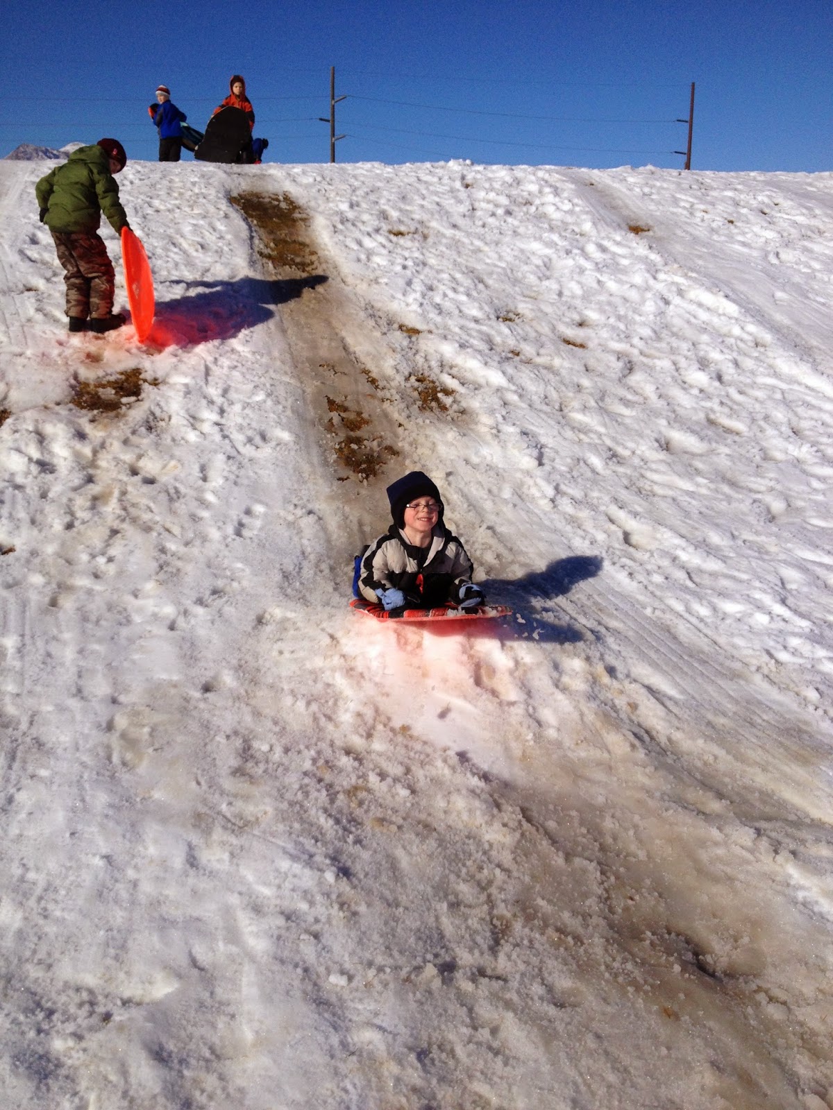 The Grobs were staying with us for a few days while Brittany had some events in Provo she was attending. Today we had all Courtney, Melanie, Anthony, Davie, and Kirby so we took them all sledding. Since I was watching them and we didn't have a car Kade went with a fellow gym teammate to his gym meet today so he didn't get to join us on the sledding hill. We had a great time. It was a pretty warm day and so the snow was pretty slushy. We were all soaked by the end of the outing but it was worth the fun. At one point we formed a jump and when Courtney and Kirby went down the hill to test it out it blew apart when they hit it. It was pretty funny. We learned that we needed to pack it better. :)